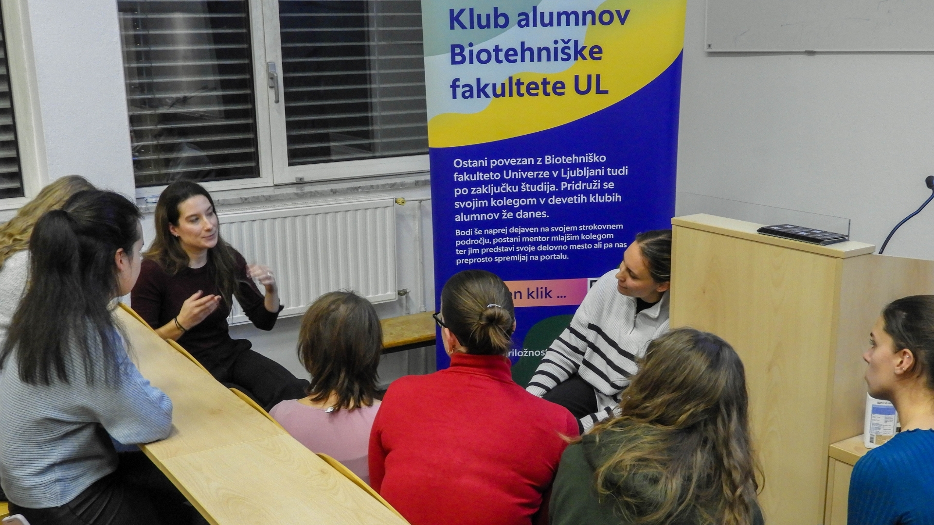 Na Biotehniški fakulteti so v sredo, 26. novembra 2025, alumne predstavljale svoje karierne poti in študente povabile k sodelovanju v mentorskem programu Alumni za študente. Svoje karierne poti so predstavljale alumne živilstva, mikrobiologije, agronomije in krajinske arhitekture. Po pogovoru so študenti imeli možnost postavljanja bolj konkretnih vprašanj v malih skupinah.
